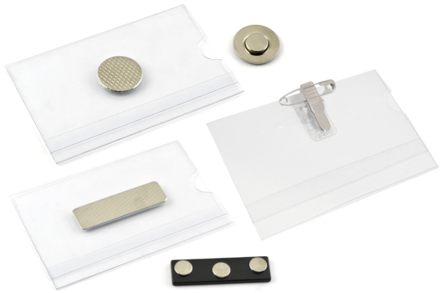 Um den passenden Namenschildhalter auszuwählen, sollten Sie zwei Punkte berücksichtigen: das Format und die Art der Befestigung. Unsere Namensschilder haben fast alle das praktische Visitenkarten- bzw. Scheckkartenformat. Bei der Art der Befestigung können Sie zwischen einem Kombiclip (Klemme und Sicherheitsnadel) und einer magnetischen Befestigung wählen.