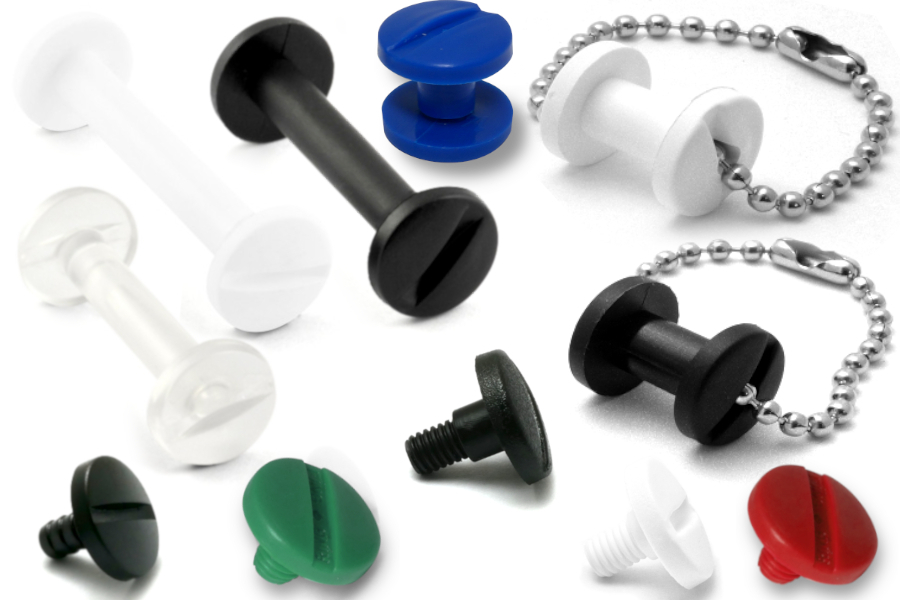 Buchschrauben aus Kunststoff in Schwarz, Weiß, Transparent und farbig