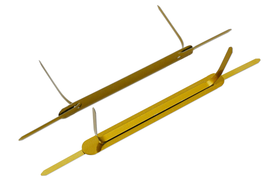 Doppelheftzungen aus Metall, 170 mm, Deckleiste, 120 x 12 mm, goldlackiert