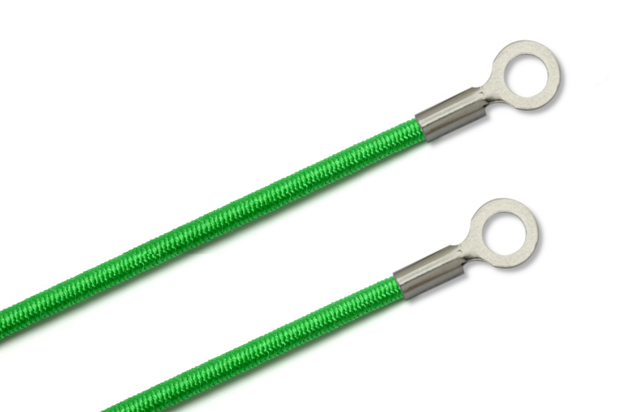 Gummischnüre mit Kabelschuhen, geschlossen, grün