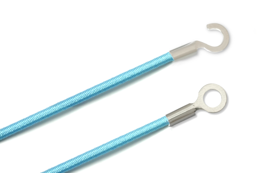 Gummischnüre mit Kabelschuhen, geschlossen und offen, hellblau