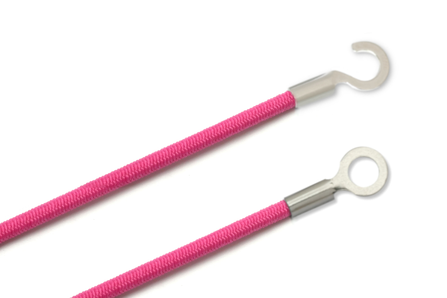 Gummischnüre mit Kabelschuhen, geschlossen und offen, pink