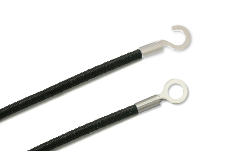 Gummischnüre mit Kabelschuhen, geschlossen und offen, schwarz